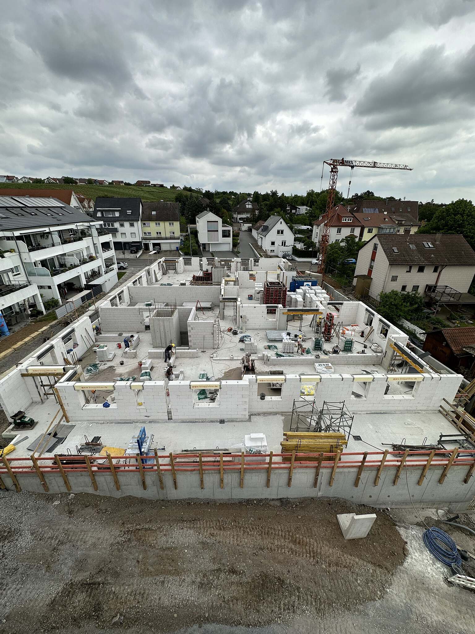 Nachdem die Außenwände im Untergeschoss und die Unterzüge der Tiefgarage fertiggestellt wurden, wurde die Unterstützung der Plattendecke eingebaut und die Halbfertigteildecke verlegt. Danach erfolgte die Verlegung vom Baustahl, woraufhin die Decke auch betoniert werden konnte. Insgesamt wurden für die Decke über dem Untergeschoss ca. 265 m³ Beton und 35 Tonnen Baustahl verwendet! Aktuell laufen die Arbeiten am Mauerwerk im Erdgeschoss und das Anfüllen der Arbeitsräume, wobei auch noch die Entwässerungsleitungen verlegt werden müssen.